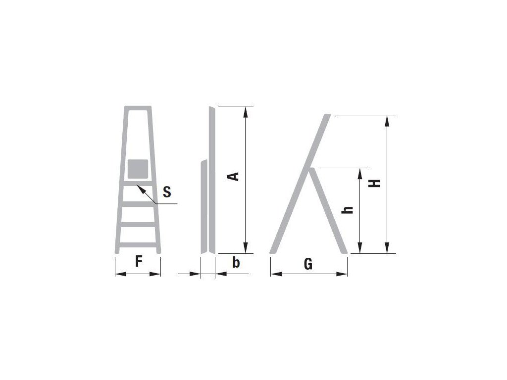 Hodnoty A, H a h udávají pracovní výšky schůdků. Před výběrem prosím zvažte potřebnou výšku místa, kde budou schůdky používány.