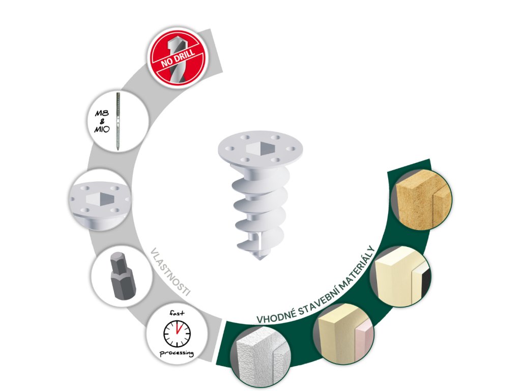 Patentovaná hmoždinka pro izolační materiály.